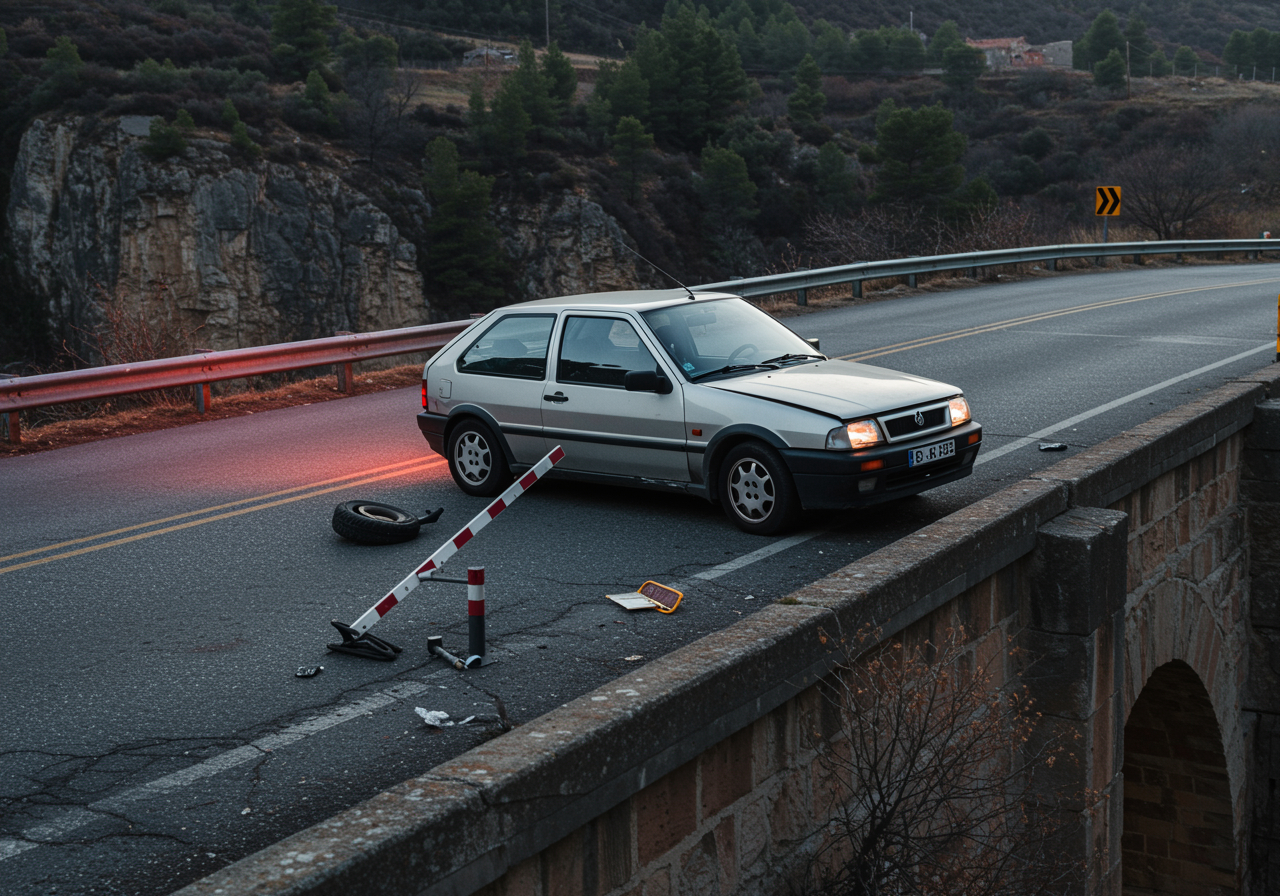 El coche de un hombre de cuarenta y siete años chocó contra una barandilla y quedó parcialmente colgado, con parte del vehículo suspendido sobre el vacío, como si estuviera a punto de caer al agua. El peligro era evidente, tanto para el conductor como para el resto de usuarios de la vía.