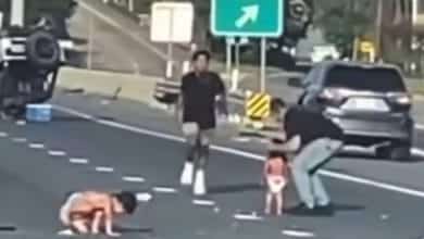 Aparatoso accidente de tráfico: dos bebés salen despedidos del coche y caen en medio de la carretera