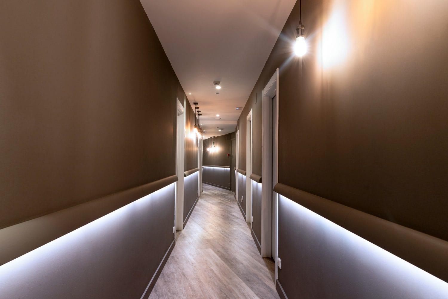 Hoy la mayoría de hoteles trabaja con LED regulables que permiten subir o bajar la intensidad según la zona y el momento. Los pasillos y habitaciones pueden mantenerse con un nivel mínimo de luz por la noche, suficiente para la seguridad pero con un gasto muy contenido.