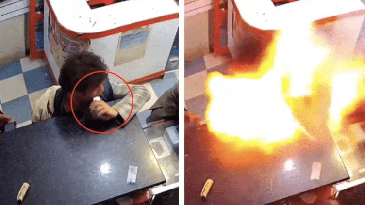 Un vídeo grabado por una cámara de seguridad en India, dejó a muchos con la misma sensación, incredulidad y susto. En el clip se ve a un hombre que, por unos segundos, acerca a su boca una batería de su móvil fuera del teléfono y la muerde. La reacción es inmediata: una bola de fuego le estalla en el rostro.