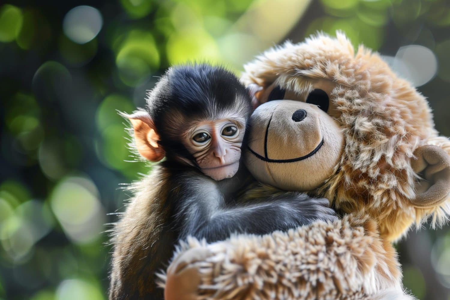 El peluche funciona como un objeto de consuelo y de apego. No sustituye a una madre real, pero reduce el estrés cuando el entorno se vuelve hostil. También le da un punto de apoyo físico, algo que puede abrazar, arrastrar y usar para descansar. En pocas palabras, es un puente hacia la seguridad, no un final feliz de cuento.